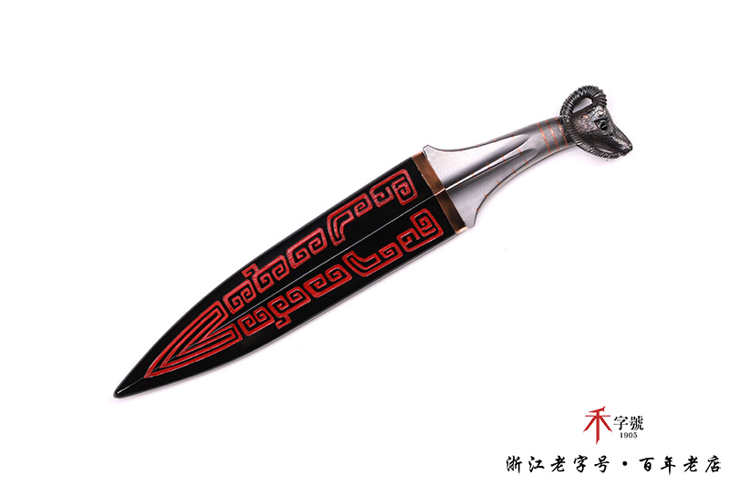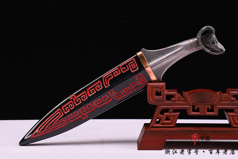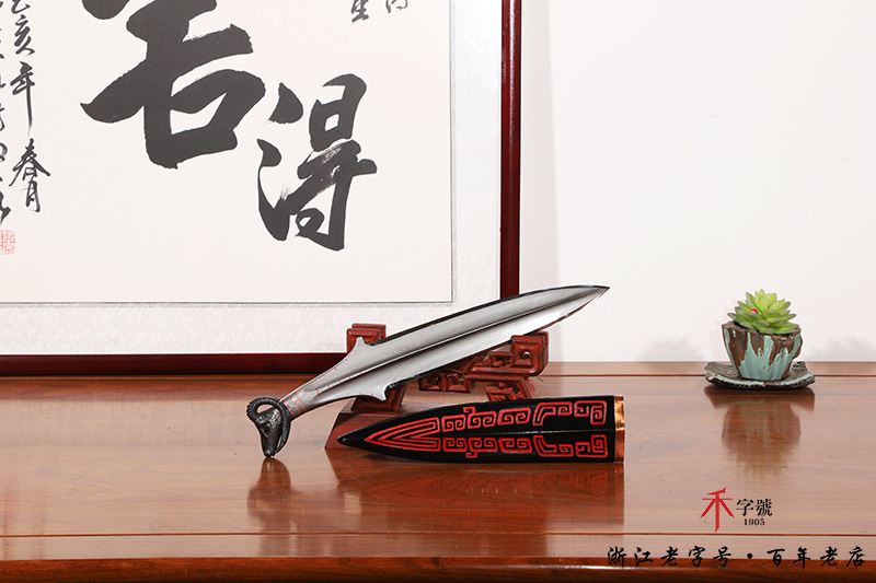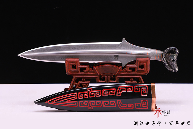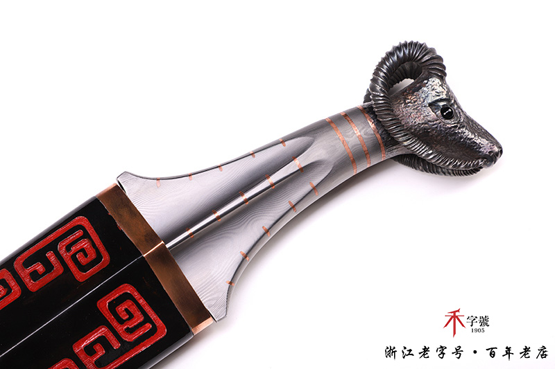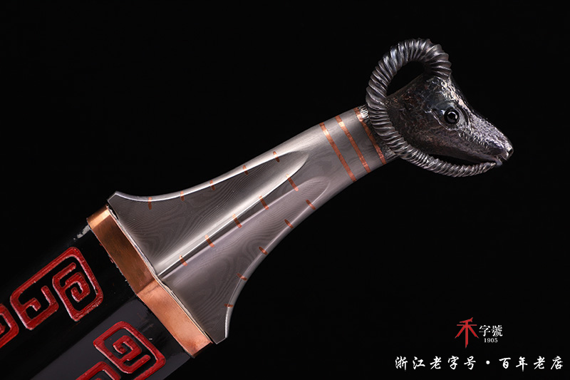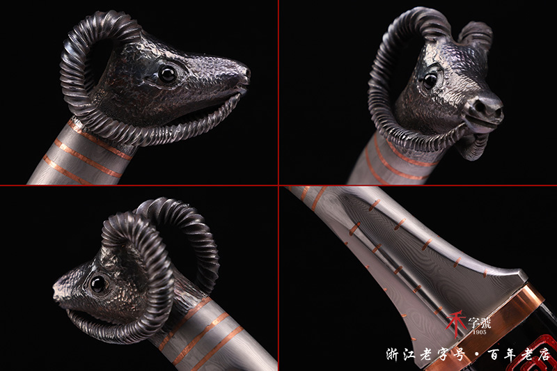 【作品柄材】 一体百炼钢手工打造,镶嵌紫铜,手工雕刻