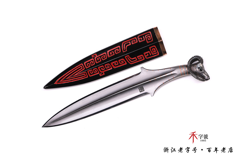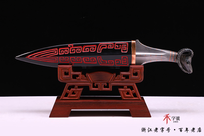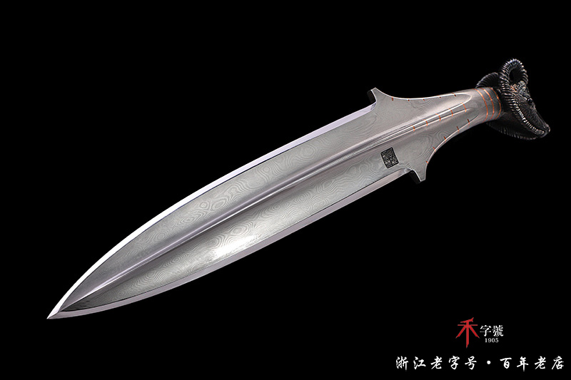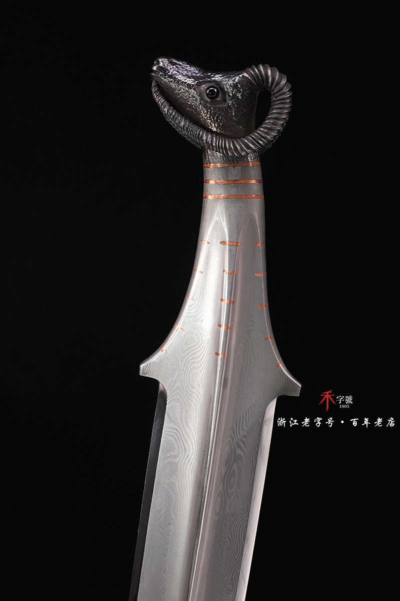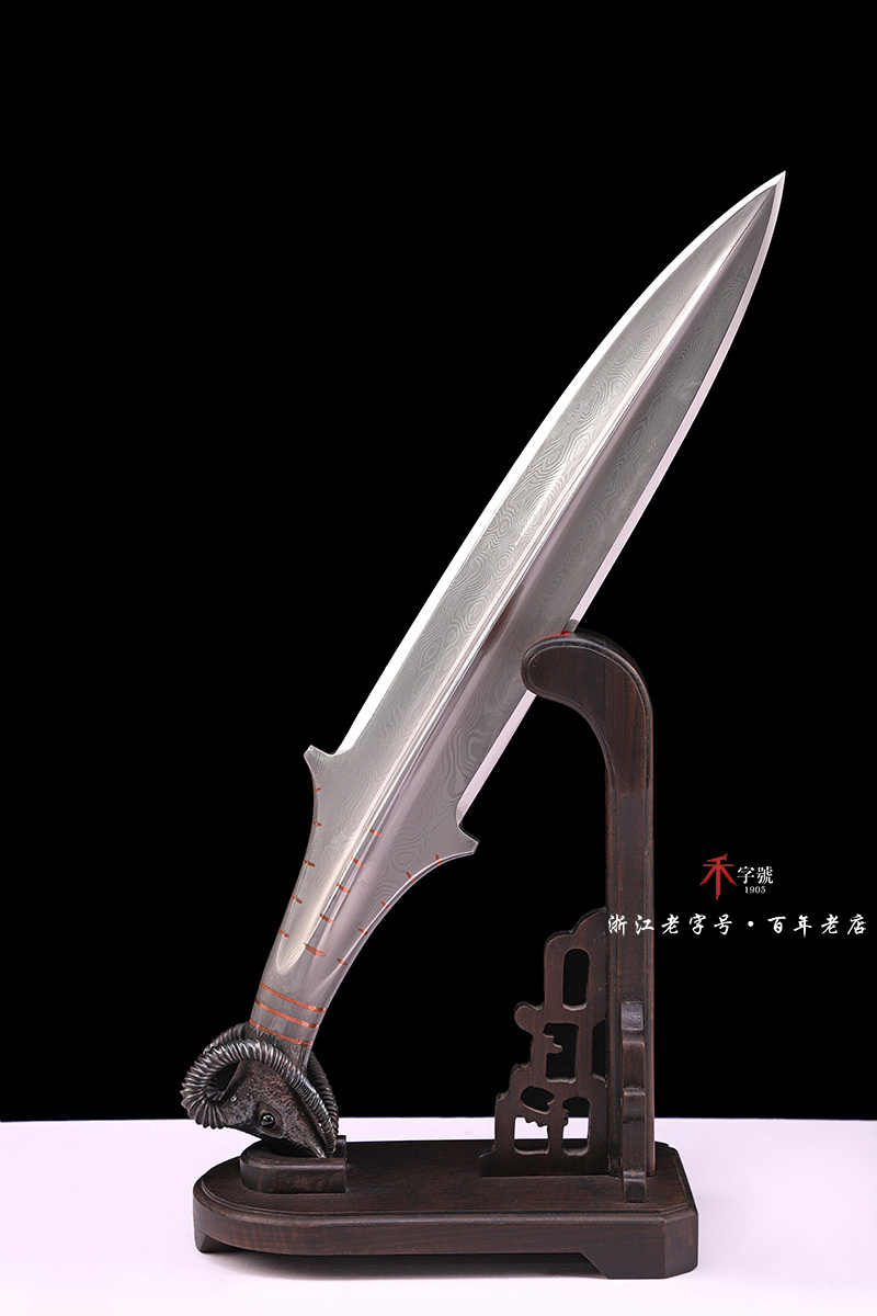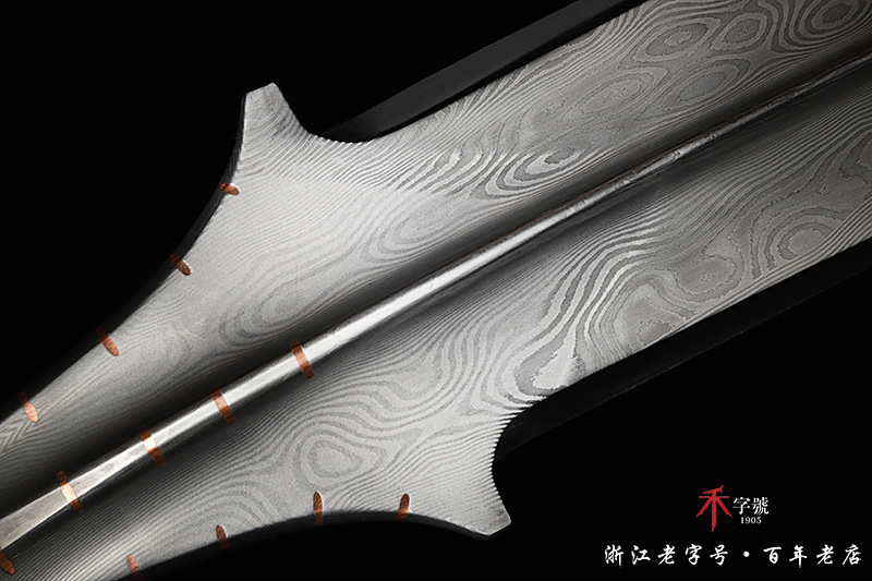 【刃材工艺】 高难度禾字号古法百炼钢一体打造,古法热处理,手工精细磨,镶嵌紫铜, 根部刻字:查长伟制