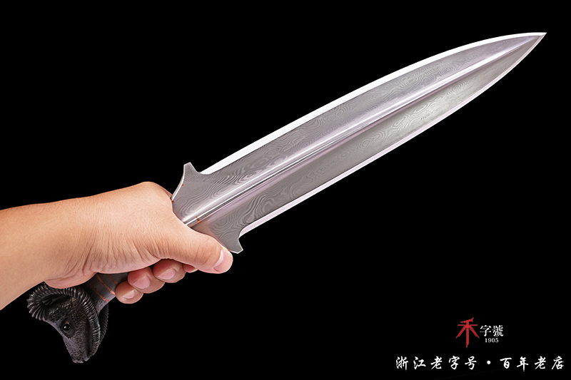 【作品规格】 全长:46cm左右,柄长:14cm,刃长:27cm,刃宽:5.5cm,刃厚:2.3cm,重量:不带鞘1.3kg左右,带鞘1.5kg左右。